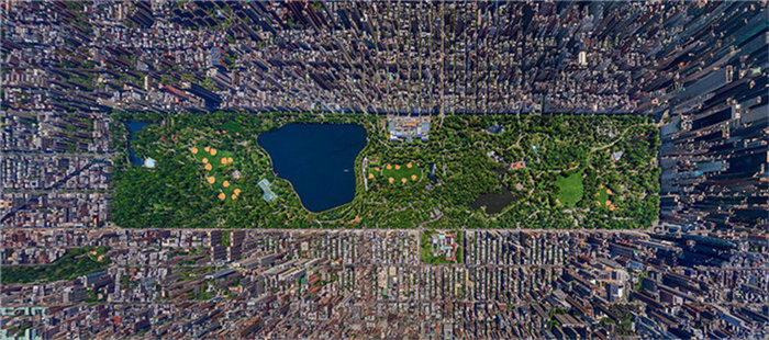 New York. Die grüne Zone im Zentrum ist der Zentralpark, dessen Fl?che sogar gr??er ist als die Gesamtfl?che von Monaco. Um den Park stehen die Hochh?user dicht an dicht. Das ist der Bezirk im Stadtzentrum von New York, Manhattan.