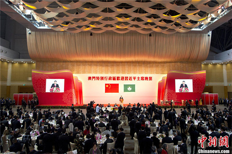 | Staatspr?sident Xi trifft bei dem Begrü?ungsbankett Vertreter aus verschiedenen Kreisen in Macao und dabei h?lt er eine wichtige Rede. |