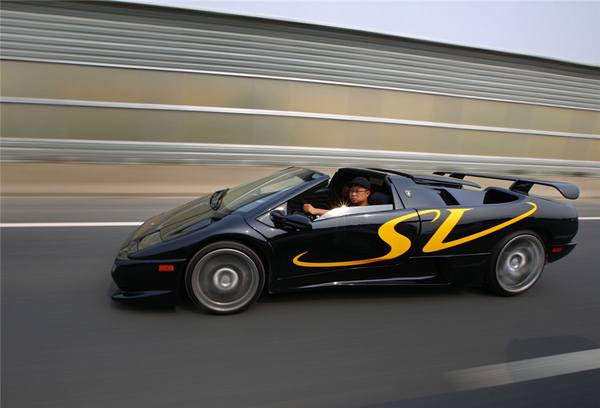 Wang Yu f?hrt seinen selbstgebauten Lamborghini Diablo auf der Autobahn in Beijing. Er und sein Partner Li Lintao haben 812.000 US-Dollar und sechs Jahre gebraucht, um den Rennwagen zusammenzubauen. Einen zweiten Nachbau des Lamborghinis haben sie an den chinesischen Internet-Riesen Alibaba verkauft.
