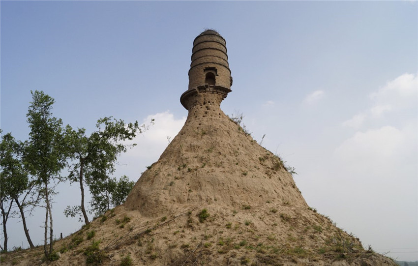 | Trotz der starken Verwitterung an seinem Fu? sitzt der alte Turm in der Provinz Shanxi fest auf seinem Erdhügel. |