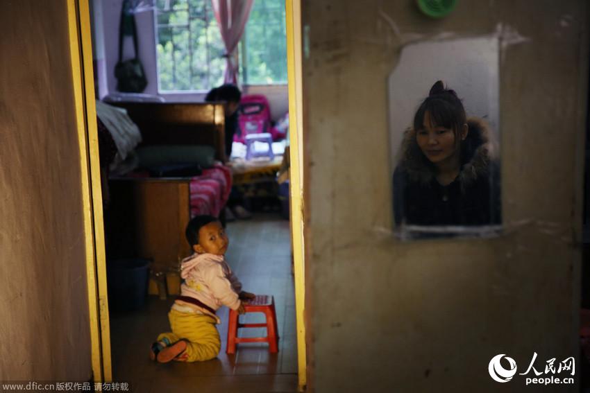 Die F?higkeit zum Gehen ist aufgrund der Krankheit beeintr?chtigt. Yahui bewegt sich mit Hilfe eines Stuhls.