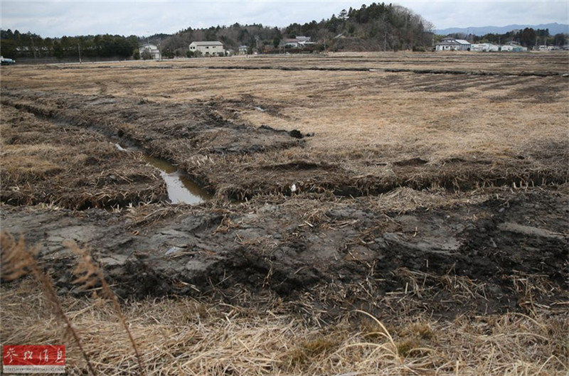 Durch den Tsunami zerst?rte Ackerfl?chen im Landkreis Futaba. Dort liegen die 5. und 6. Atomanlage des AKWs.