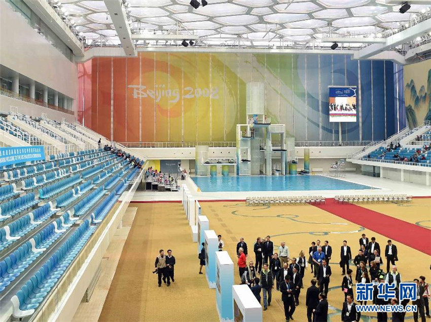 Auch das Nationale Schwimmzentrum, besser bekannt als ?Wasserwürfel“, wird von den IOC-Inspektoren begutachtet.
