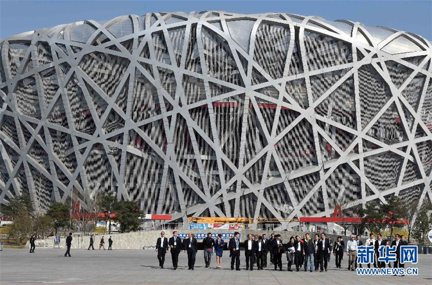 | Die Inspektoren-Gruppe vor dem ?Vogelnest“. |