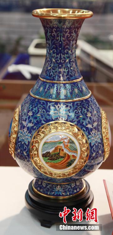 Eine Cloisonné-Vase: Ihre vier Seiten sind mit dem APEC-Logo, dem APEC-Konferenzzentrum, der Gro?en Mauer und dem Himmelstempel dekoriert.