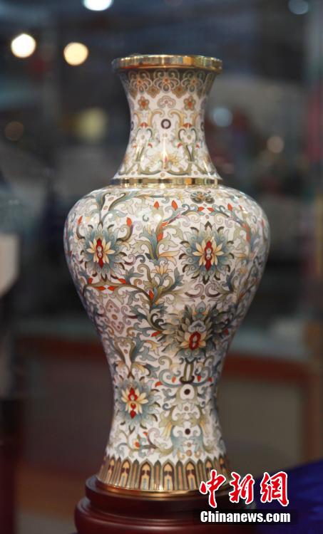 | Diese Cloisonné-Vase wurde von acht chinesischen Künstlern gemeinsam geschaffen. |