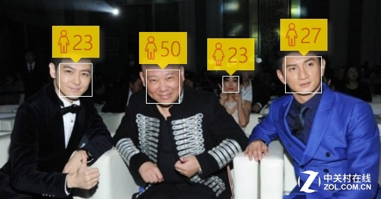 Laut ?how-old.net“ ist der Schauspieler Jimmy Lin ganz links im Bild viel jünger als der Komiker Guo Degang rechts von ihm. In Wirklichkeit sind die beiden mit 40 (Lin) und 42 (Guo) jedoch fast gleich alt.