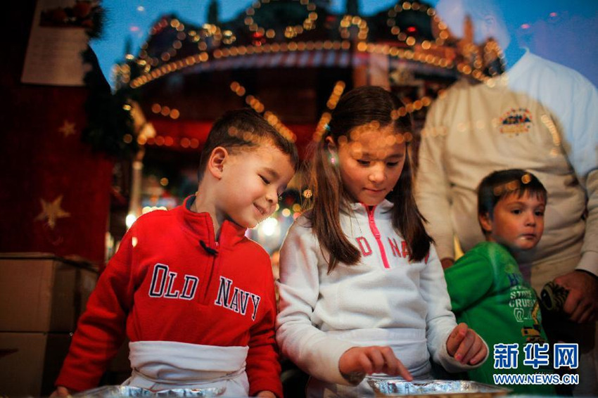 | Deutschland, 29. November 2014: Auf dem Weihnachtsmarkt in Nürnberg versuchen Kinder, Weihnachtsgerichte zu machen. |