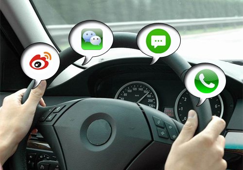 Auf China bezogen zeigt die Untersuchung, dass 59 Prozent der chinesischen Fahrer am Steuer die Nachrichten-App Wechat nutzen und 36 Prozent auf Chinas Twitter Sina Weibo posten, w?hrend sie ihr Auto durch den Stra?enverkehr lenken.