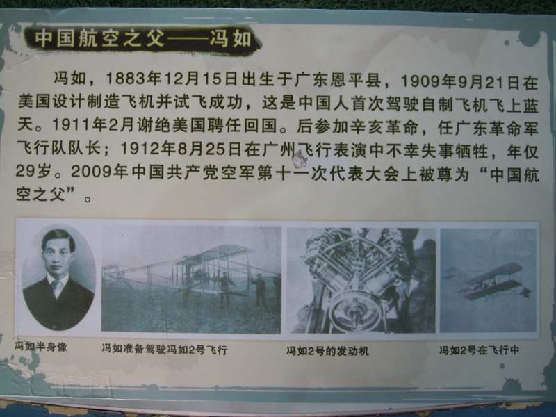 Leider sind viele Infotafeln wie jene über Feng Ru (1883-1912), den Vater von Chinas Luftfahrt, nur auf Chinesisch verfasst.