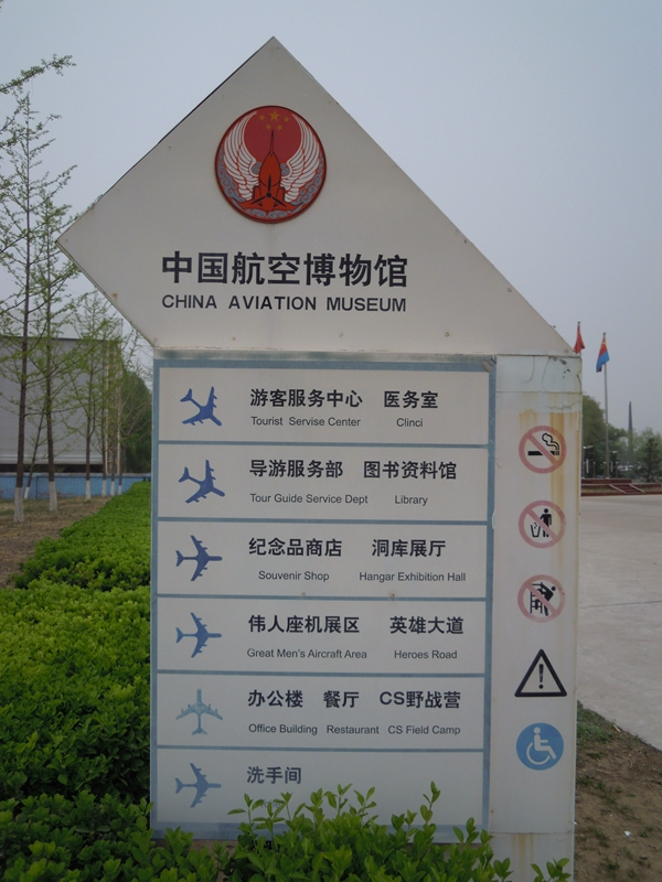 | Das Museum auf dem ehemaligen Luftwaffenstützpunkt Shahe beherbergt über 300 Flugzeuge. Die Maschinen auf den Wegweisern nicht eingerechnet. |