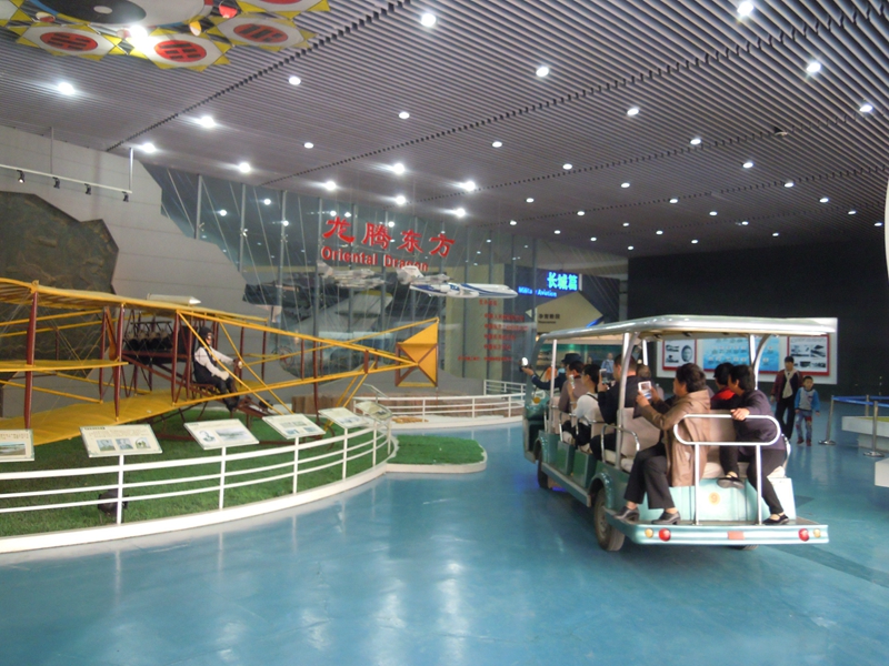 Shuttles bringen die Besucher schnell und bequem durch das über einhundert Fu?ballfelder gro?e Museum. Links im Bild eine Kopie von Feng Rus Nr. 2.