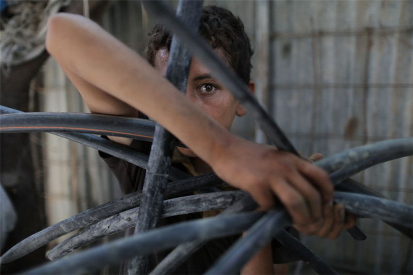 | Am 14. Juni 2013 sammelt ein pal?stinensischer Junge Abf?lle. |