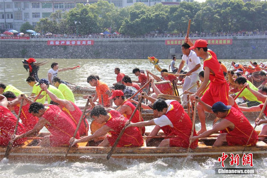 | Szenen vom Drachenboot-Rennen im Dao-Kreis vom vergangenen Jahr. |