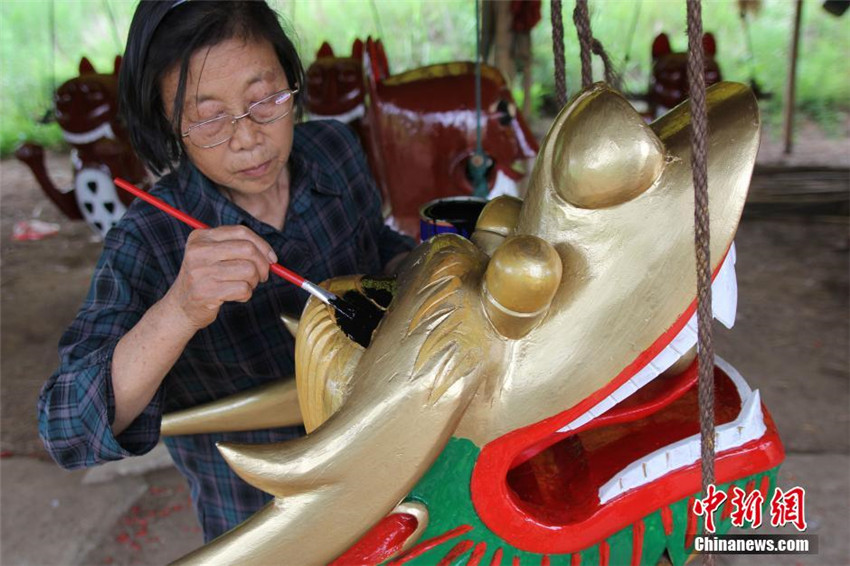 | Zhou Chengyun und seine Frau beim Bemalen der Drachenk?pfe. |