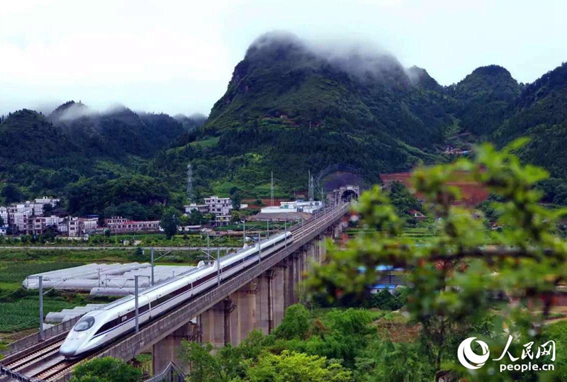| Die neue Strecke der Shanghai-Kunming-Hochgeschwindigkeitsbahn in Ost-Guizhou wurde heute Donnerstag in Betrieb genommen. |