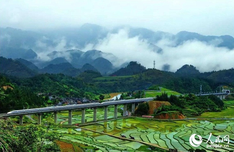 | Die neue Strecke der Shanghai-Kunming-Hochgeschwindigkeitsbahn in Ost-Guizhou wurde heute Donnerstag in Betrieb genommen. |