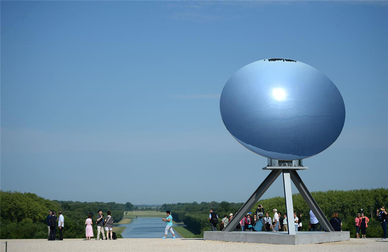 | Blauer Himmel über der Skulptur ?Spiegel des Himmels“ im Park des Schlosses von Versailles. |
