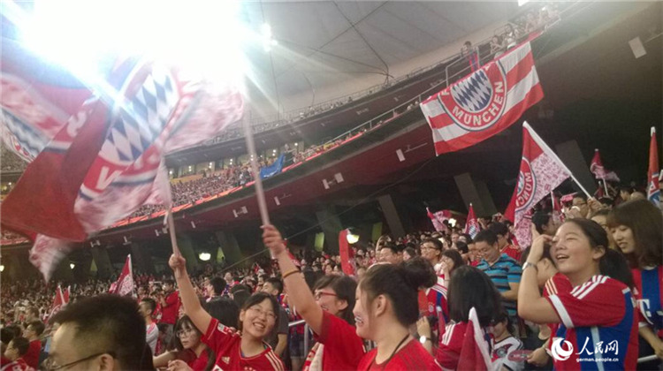 | Die chinesischen Fans unterstützen ihren FC Bayern bis zur letzten Minute euphorisch. |