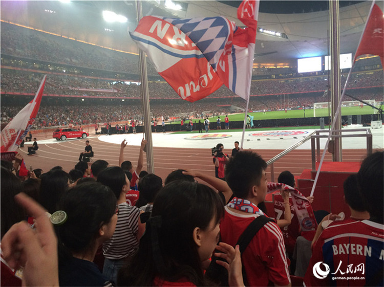 | Die chinesischen Fans unterstützen ihren FC Bayern bis zur letzten Minute euphorisch. |