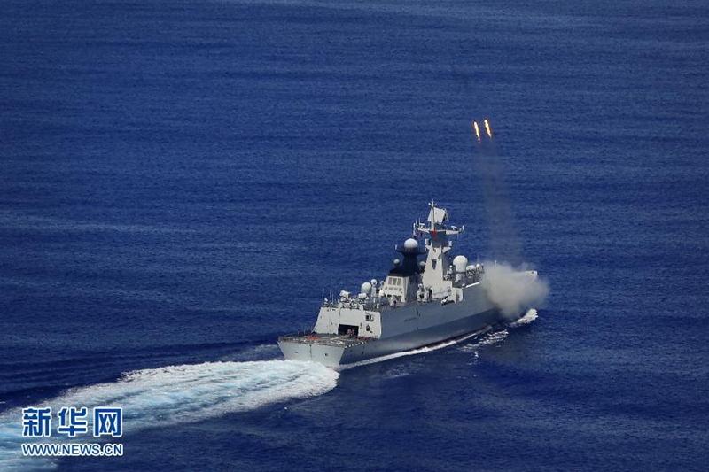 | Die ?Changzhou“ feuert Anti-U-Boot-Raketen ab. |