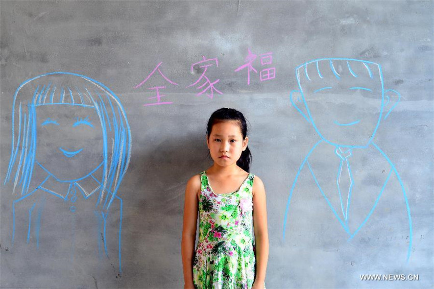 | Xu Kexin posiert für ein fiktives Foto mit ihren Eltern. |