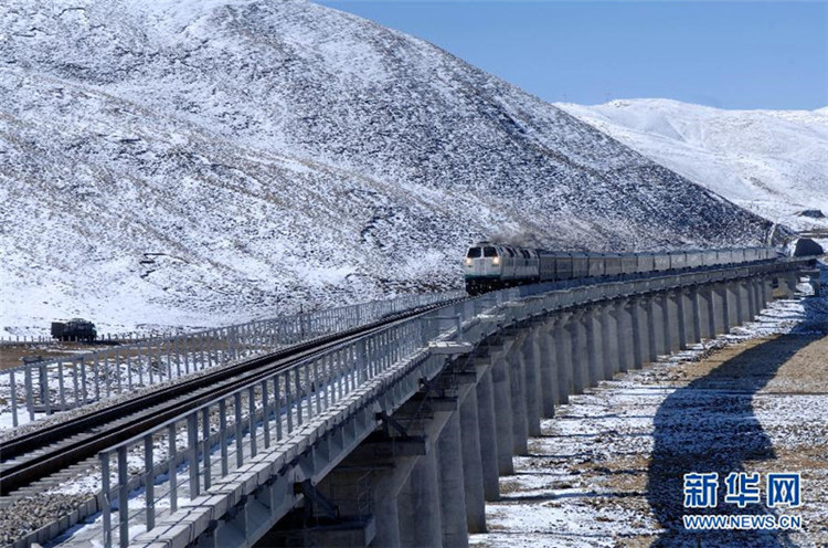 | Ein Zug unterwegs hinauf nach Lhasa. |