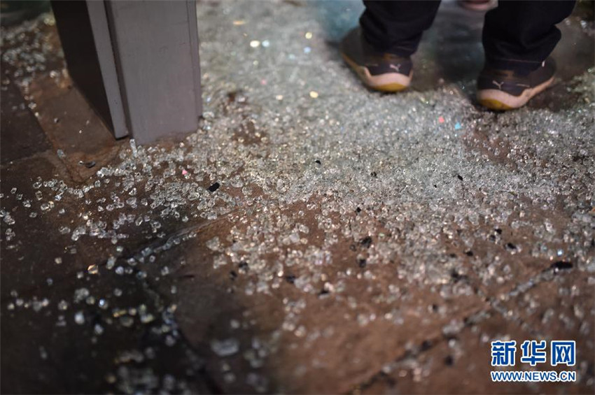 | überall auf der Stra?e liegen Glassplitter herum. |