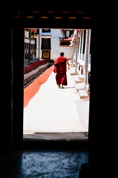 | Nyima Tsering auf dem Weg in sein Büro im Jokhang-Tempel. |