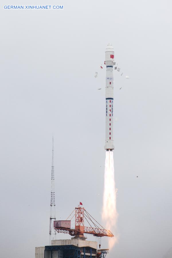 Eine Lange Marsch-4B Tr?gerrakete mit dem Fernerkundungssatelliten Yaogan-28 hebt vom Satellitenstartzentrum in Jiuquan, der Hauptstadt der nordchinesischen Provinz Shanxi, ab, 8. November 2015. Der Satellit kommt haupts?chlich für Experimente, Landvermessung, Anbauertragssch?tzung und Katastrophenschutz zum Einsatz.