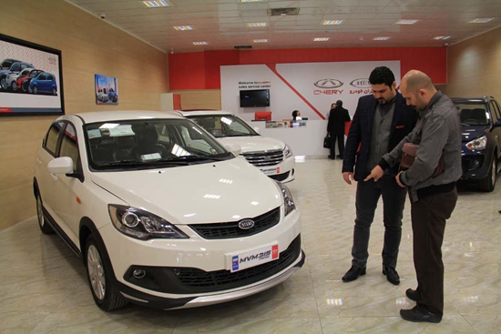 Ein H?ndler beantwortet die Frage eines Kunden in einem Autoladen der chinesischen Marke Chery im Stadtzentrum von Teheran.