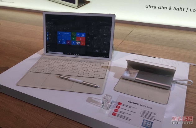 Das MateBook wiegt 640 Gramm, im Vergleich zu den 713 Gramm für Apples iPad Pro und dem 766 Gramm schweren Microsoft Surface Pro 4, die beide für ihr leichtes Design bekannt sind. Es hat einen 12-Zoll-Bildschirm.