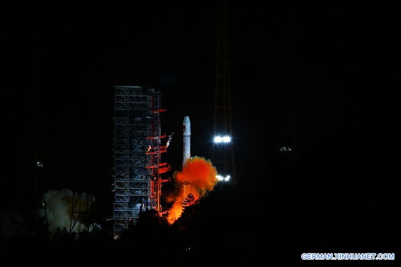 Eine Tr?gerrakete des Typs Langer Marsch 3A mit dem 22. Satellit von BeiDou-Navigationssatellitensystem (BDS) an Bord hob vom Xichang Satellitenstartzentrum in der südwestchinesischen Provinz Sichuan ab, 30 M?rz 2016. China startete am Mittwoch um 4.11 Uhr morgens einen Satelliten, um sein globales Navigations- und Ortungsnetzwerk zu unterstützen.