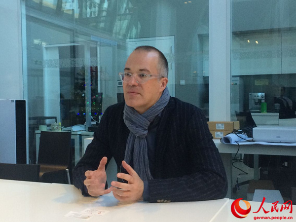 Dr. Clemens Treter, Leiter des Goethe-Instituts in Beijing, beim Interview mit People’s Daily Online in den R?umlichkeiten des Instituts im Künstlerviertel 798. (Foto: Wang Xiaoding)