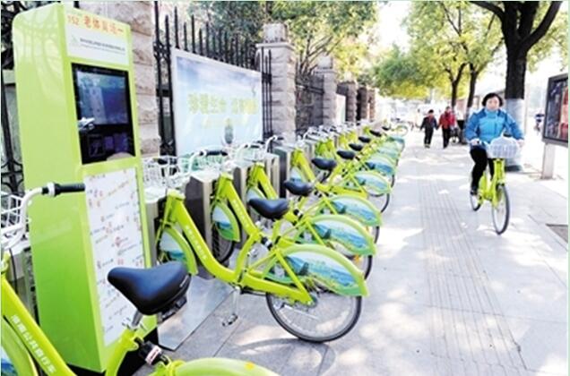 Um den kohlenstoffarmen Verkehr zu unterstützen hat die Stadt Huainan in der Provinz Anhui ein ?ffentliches Fahrradverleihsystem an 300 Orten mit 10.000 Fahrr?dern und 12.000 Stationen an den wichtigsten Verkehrspunkten der Stadt eingerichtet. Anwohner k?nnen mit einem solchen Leihfahrrad eine Stunde kostenlos fahren. (Foto: People’s Daily)