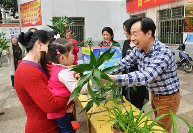 Im April 2016 fand in der Gemeinde Xinyu in der Provinz Jiangxi eine Umweltaktion statt, bei der Anwohner alte Batterien gegen Pflanzen eintauschen konnten. Die Aktion zielte darauf an, mit dem Umweltschutz im Kleinen anzufangen und damit die Bev?lkerung zu einer umweltfreundlichen Lebensweise anzuregen. (Foto: People’s Daily)