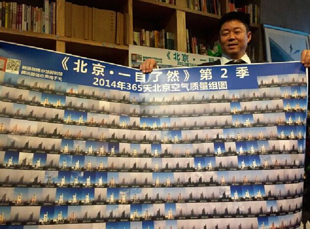 Zou Yi pr?sentiert Medienvertretern seine 2014 aufgenommenen Fotos der Beijinger Luftqualit?t. (Foto: chinaenvironment.com)