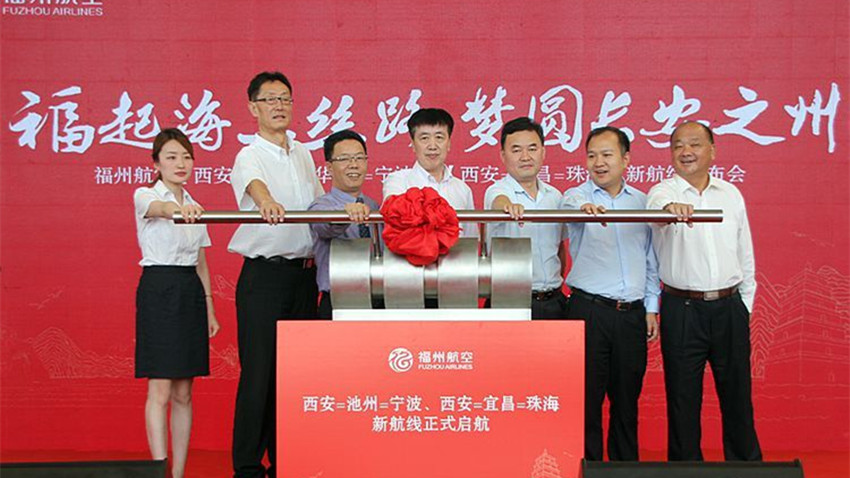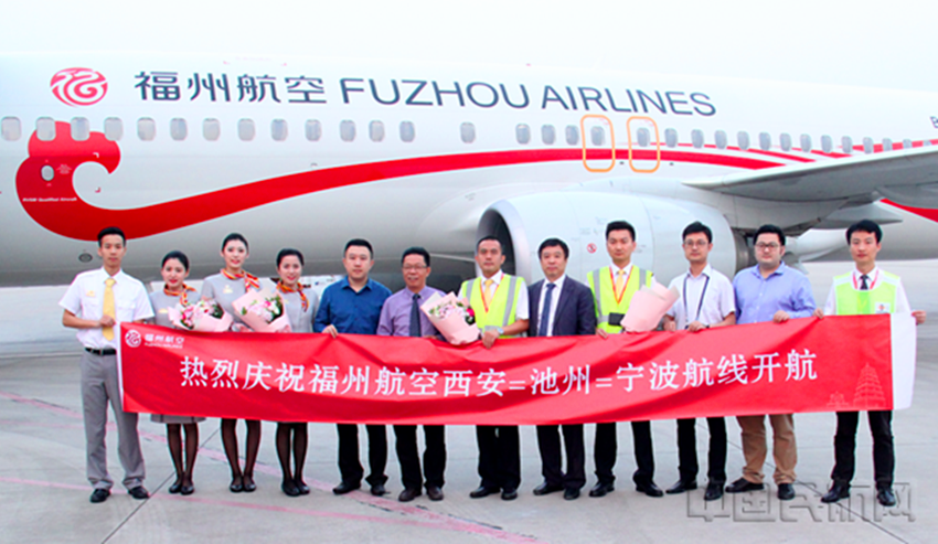Um 6 Uhr am 16. Juni hat Fuzhou Airlines den Jungfernflug der Linie Xi′an-Chizhou(Jiuhuashan)-Ningbo in dem Morgenlicht gefeiert. Ein Boeing 737-800 mit Blumen und Wünschen bereitete sich auf den Start vor. Danach fand die Pressekonferenz für die neuen Linien von Fuzhou Airline Xi′an-Chizhou-Ningbo und Xi′an-Yichang-Zhuhai auf dem Xi′an Xianyang Internationalen Flughafen statt.