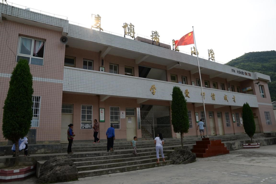 Ein Foto vom 26. Juni 2016 zeigt eine Grundschule im Dorf Caowangba, Zunyi, in der südwestchinesischen Provinz Guizhou. Ursprünglich von Huang Dafa initiiert, garantierte die Schule 100 Kindern im Dorf ihre Schulbildung. In den letzten Jahren wurde die Schule mit Investitionen von Unternehmen weiter verbessert und umgebaut. (Foto von Luo Xinghan/People's Daily Online)