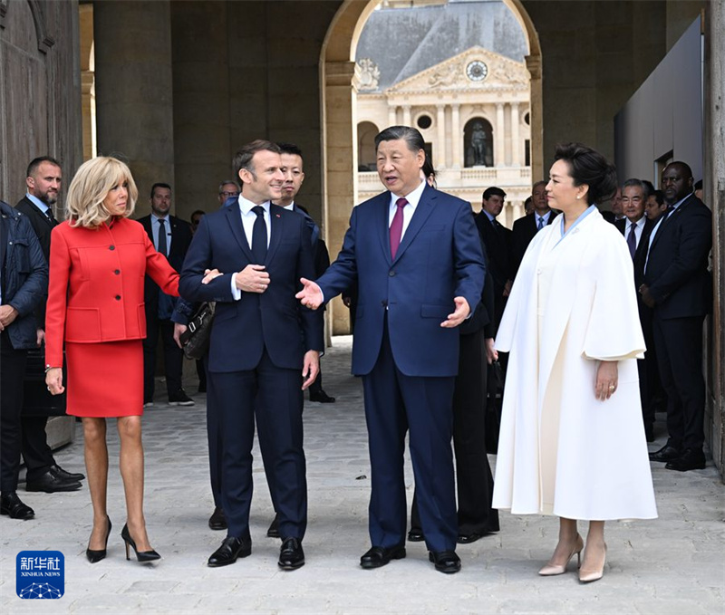 Als Xi Jinping und seine Frau Peng Liyuan ankamen, wurden sie von dem Ehepaar von Macron begrü?t. Danach haben die Staatsoberh?upter beider L?nder gemeinsam die Republikanische Garde und die Ehrenwache des Heers, der Marine sowie der Luftwaffe Frankreichs inspiziert.