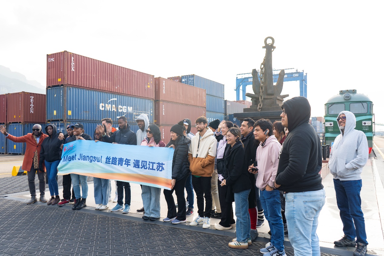 Journalisten machen ein Gruppenfoto im Hafen von Lianyungang, Stadt Lianyungang, Provinz Jiangsu, am 22. Oktober 2024. (People’s Daily Online/Chang Sha)