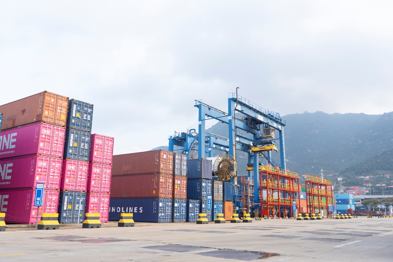 Das Foto vom 22. Oktober 2024 zeigt gestapelte Container im Hafen von Lianyungang, Stadt Lianyungang, Provinz Jiangsu. (People’s Daily Online /Chang Sha)