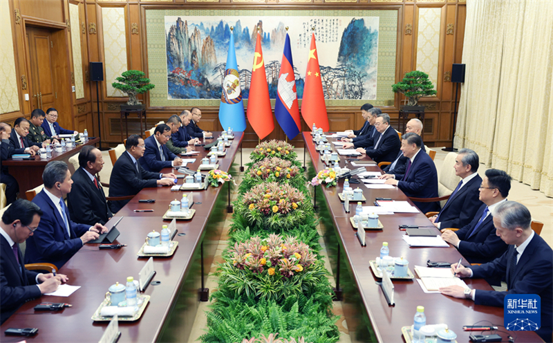 Xi sagte bei dem Treffen, China betrachte Kambodscha stets als eine Priorit?t seiner Nachbarschaftsdiplomatie und wolle gemeinsam mit Kambodscha eine hochwertige, fortschrittliche und vorbildliche Gemeinschaft mit geteilter Zukunft im neuen Zeitalter aufbauen. Beide Seiten sollten die gegenseitige Unterstützung festigen, die enge Freundschaft st?rken, den Austausch und das Voneinanderlernen vertiefen, um gemeinsam Entwicklung und Wohlstand zu f?rdern sowie Kooperationschancen nutzen, um neue Wege für Win-Win-Ergebnisse zu erschlie?en. ?
