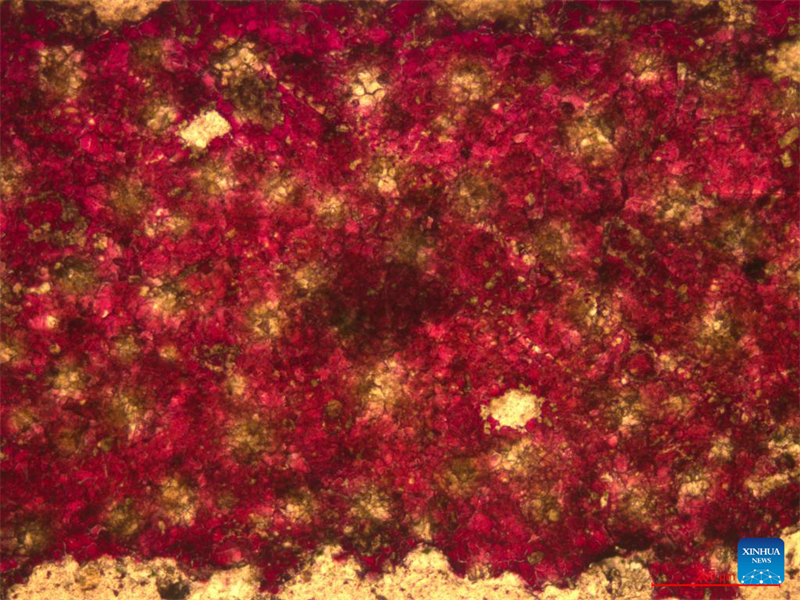 Dieses undatierte Bild wurde vom Tarim-?lfeld zur Verfügung gestellt und zeigt das mikroskopische Bild eines Gesteinsstücks, das in einer Tiefe von 10.000 Metern unter der Erde gewonnen wurde. (Tarim-?lfeld der China National Petroleum Corporation/Handout via Xinhua)