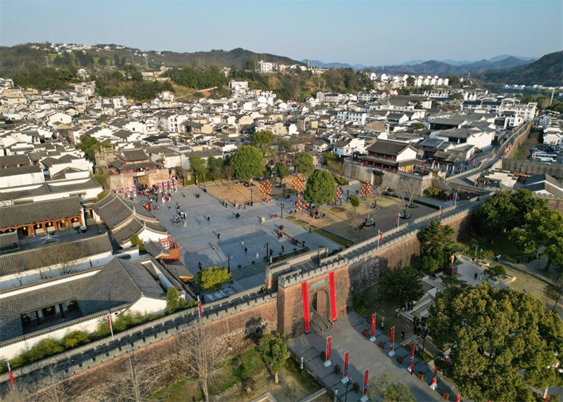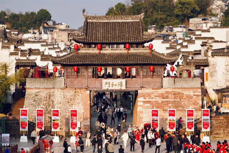 Dieses Foto vom 18. M?rz 2025 zeigt das Yanghe-Tor der antiken Stadt Huizhou im Kreis Shexian in der ostchinesischen Provinz Anhui. (Xinhua/Du Juanjuan)