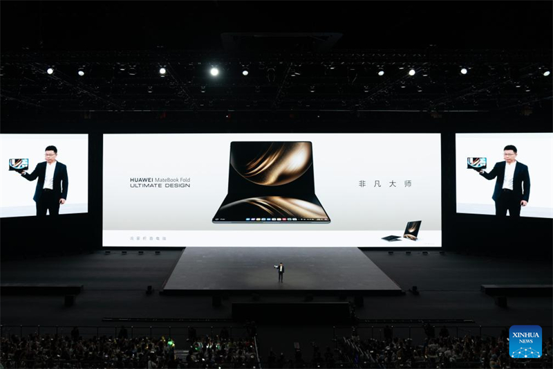 Dieses Foto zeigt das mit HarmonyOS ausgestattete Huawei MateBook Fold. (Xinhua/Xu Bingjie)