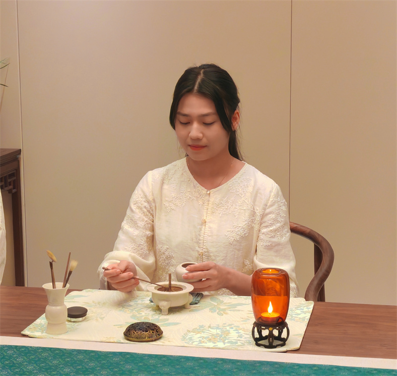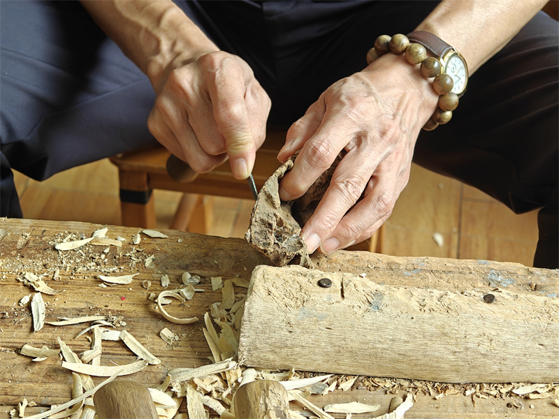 Huang Ou, Tr?ger des nationalen immateriellen Kulturerbes für die ?Agarholz-Herstellungstechnik“, demonstrierte die traditionelle Methode des ??ffnens der Dufttore“. Dabei wird pr?zise der Holzk?rper umgangen, um durch gezielte Eingriffe die Interaktion zwischen Baum und Pilzen anzuregen – ein jahrelanger Prozess der natürlichen Harzentwicklung.