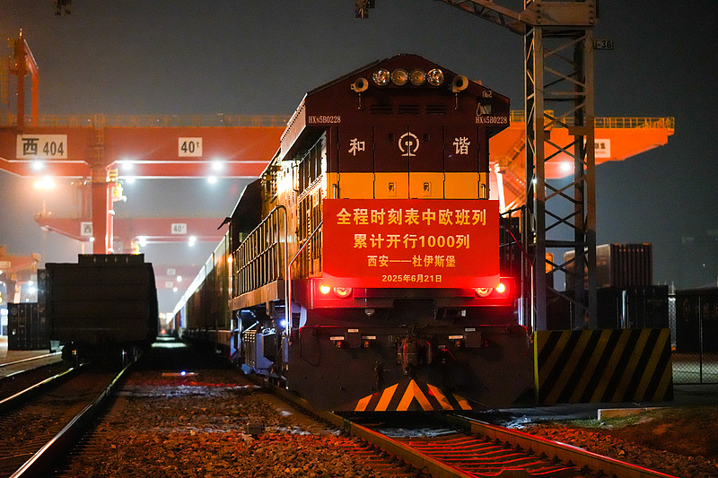 Ein mit Autoteilen, LED-Monitoren und anderen Gütern beladener Güterzug ist am Samstag von Xi'an, einer Stadt in der nordwestchinesischen Provinz Shaanxi, mit Ziel Duisburg in Deutschland abgefahren. Dies ist ein bedeutender Meilenstein, da die Zahl der China-Europa-Güterzüge mit vollst?ndigem Fahrplan nun 1.000 überschritten hat.