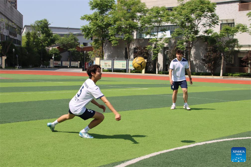 Mitglieder einer Faustballmannschaft spielen am 27. April 2025 w?hrend eines Trainings in Chengdu in der südwestchinesischen Provinz Sichuan. Faustball, im Englischen auch als Fistball bekannt, ist vor allem in deutschsprachigen L?ndern wie Deutschland, ?sterreich und der Schweiz beliebt. (Xinhua)