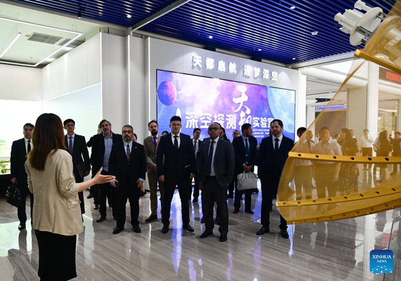 G?ste besuchen den Ausstellungsraum des Deep Space Exploration Laboratory in Hefei, Ostchinas Provinz Anhui, 7. Juli 2025. (Xinhua/Zhou Mu)